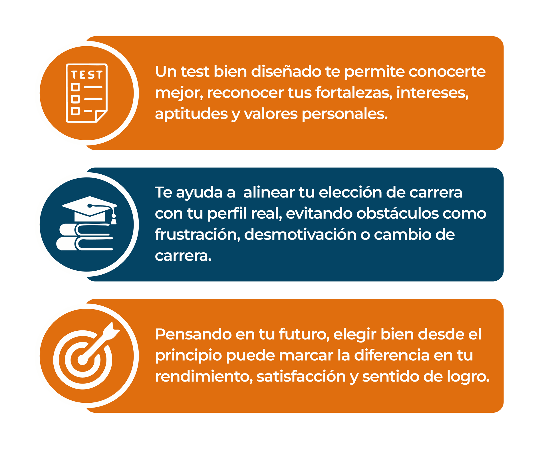 Por ejemplo, estudios indican que la intervención mediante cursos o actividades de orientación vocacional muestran mejoras significativas en variables como permanencia, satisfacción con el campo de estudio, y rendimiento académico. Así que hacer este test no es solo un “paso más”, es una estrategia para invertir bien tu tiempo y tu energía.